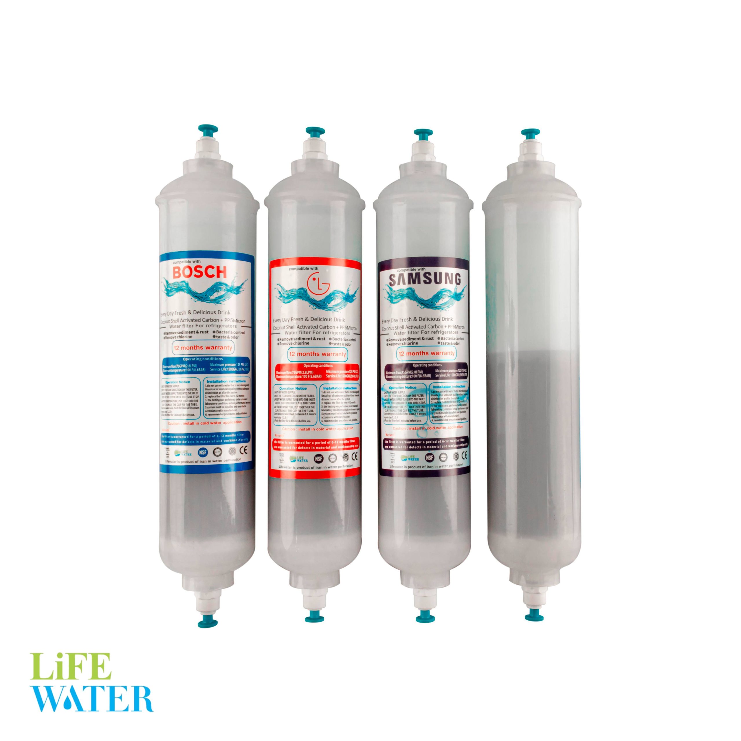 فیلتر یخچال دو منظوره لایف واتر ۱۲ اینچ مناسب سیستم هایی که دارای ورودی آب شهری میباشد (از جمله یخچال ها / اسپرسو ساز ها و… ) مناسب است . فیلتر یخچال دو منظوره لایف واتر حاوی الیاف ۵ میکرون(جذب املاح درشت و رسوب آب) ، کربن فعال(جذب کلر،رفع کدورت و طعم نامطبوع و برخی از میکرو ارگانیسم ها) ، اکسید آلومینیوم فعال(خذف فلوراید) است که این تکنیک به شما این امکان را میدهد تا آبی بسیار سالم و گوارا را از یخچال خود و دیگر سیستم های متصل به آب شهری برداشت کنید در برندهای معتبر